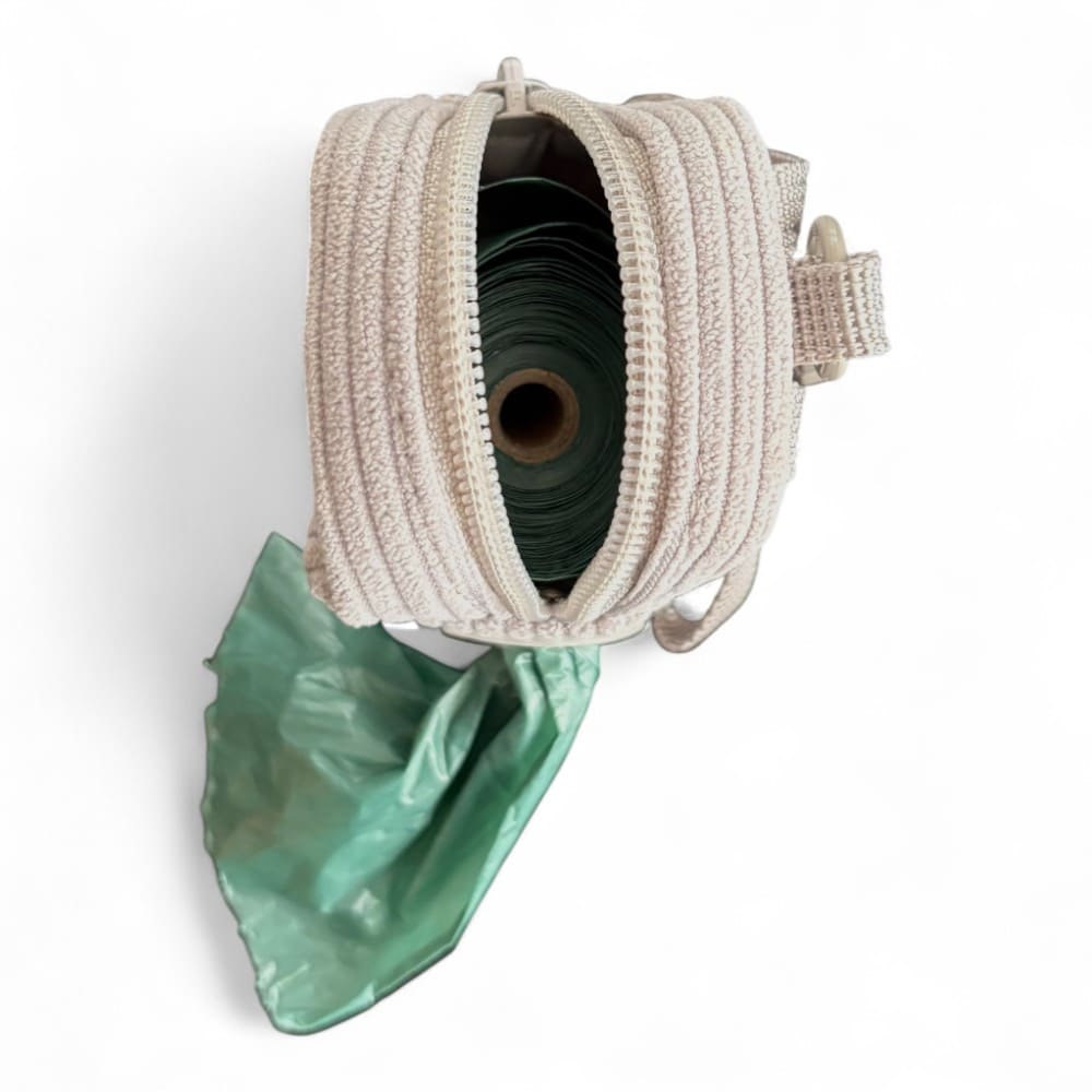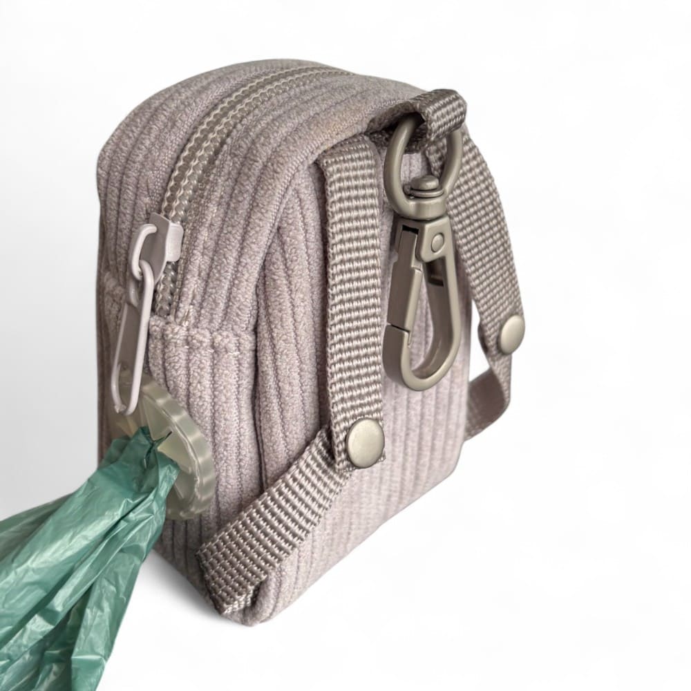 Der KLIPPA - Kotbeutelspender im passenden Cord-Look bleibt dank fester Befestigung stets griffbereit-