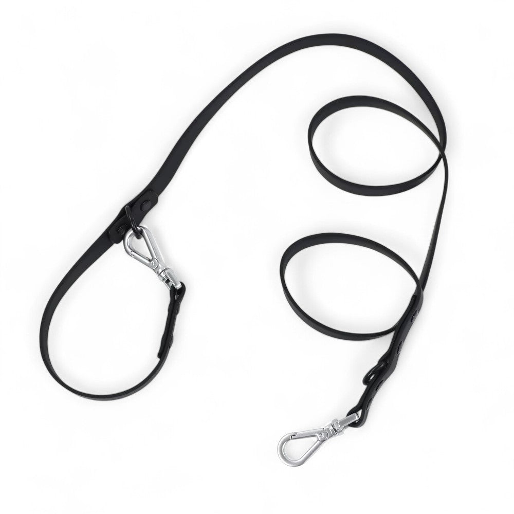 Die STRÖMMA - Führleine mit zwei Karabinern, zwei D-Ringen und drei Längenoptionen passt sich deinem Alltag an, ob locker geführt, umgehängt oder doppelt gesichert, sie bleibt formstabil, weich in der Hand und unkompliziert zu reinigen.